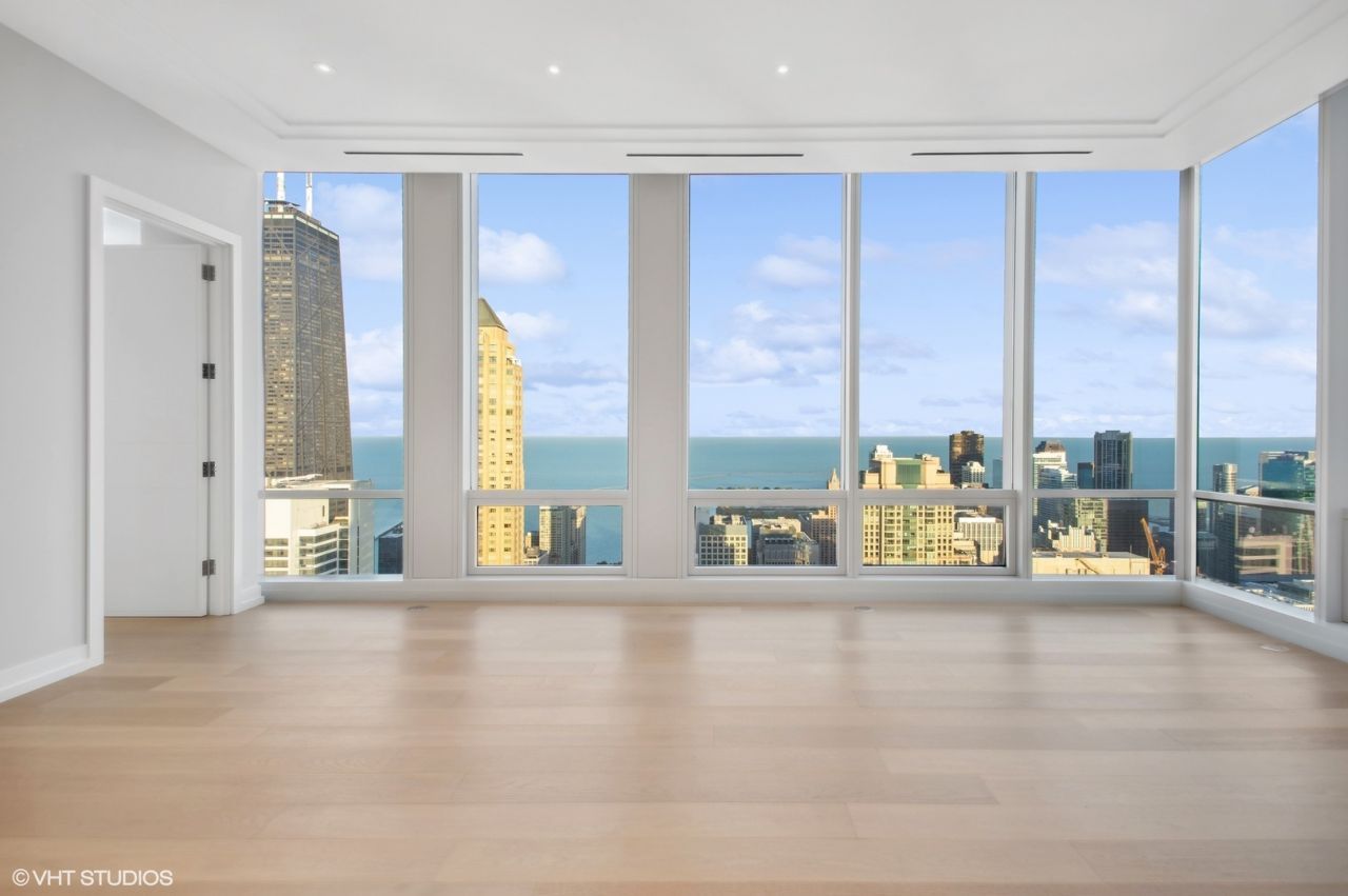 East-facing Unit 5401 offers breathtaking views of both the lake and the city! Welcome to One Chicago, a collection of 77 stunning residences perched high in the sky, starting on the 44th floor. Offering unparalleled vistas of Chicago's skyline and Lake Michigan, this architectural marvel sits at the crossroads of the Gold Coast and River North, just steps from the lakefront on Superior Street between Dearborn and State. From the moment you arrive, you're greeted by a thoughtfully designed motor court with dedicated valet service, setting the tone for a seamless and sophisticated experience. A welcoming door team ushers you into the building, where hands-free elevators and secure Latch Hardware systems elevate convenience and privacy. Inside, the open-concept living spaces are flooded with natural light, framed by full-height windows that showcase the city in all its glory. Wide plank European oak floors, stepped ceiling details, and luxurious finishes throughout ensure every detail feels both modern and refined. At the heart of Unit 5401 is a chef-inspired, custom O'Brien Harris kitchen, perfect for both casual meals and entertaining. The spacious bedrooms are designed with comfort in mind, featuring Ketra circadian lighting to promote restful sleep, while the spa-like bathrooms redefine luxury. The primary bath is outfitted with floor-to-ceiling porcelain slabs, a custom vanity with illuminated mirrors, Kalista fixtures, and Kohler's DTV programmable shower system, complemented by a cantilevered bench, recessed niches, and a fog-free shave mirror. Residents also enjoy diamond-level membership to Life Time Athletic Resort & Spa, which includes access to its premier club, fitness facilities, and spa services. Everyday conveniences such as fine dining and a flagship Whole Foods Market are right at your doorstep. This is more than a residence-it's a lifestyle, offering an unparalleled blend of tranquility, luxury, and urban energy in one of the city's most sought-after neighborhoods. From its thoughtful design to its unmatched amenities, this home is where modern living meets timeless elegance.