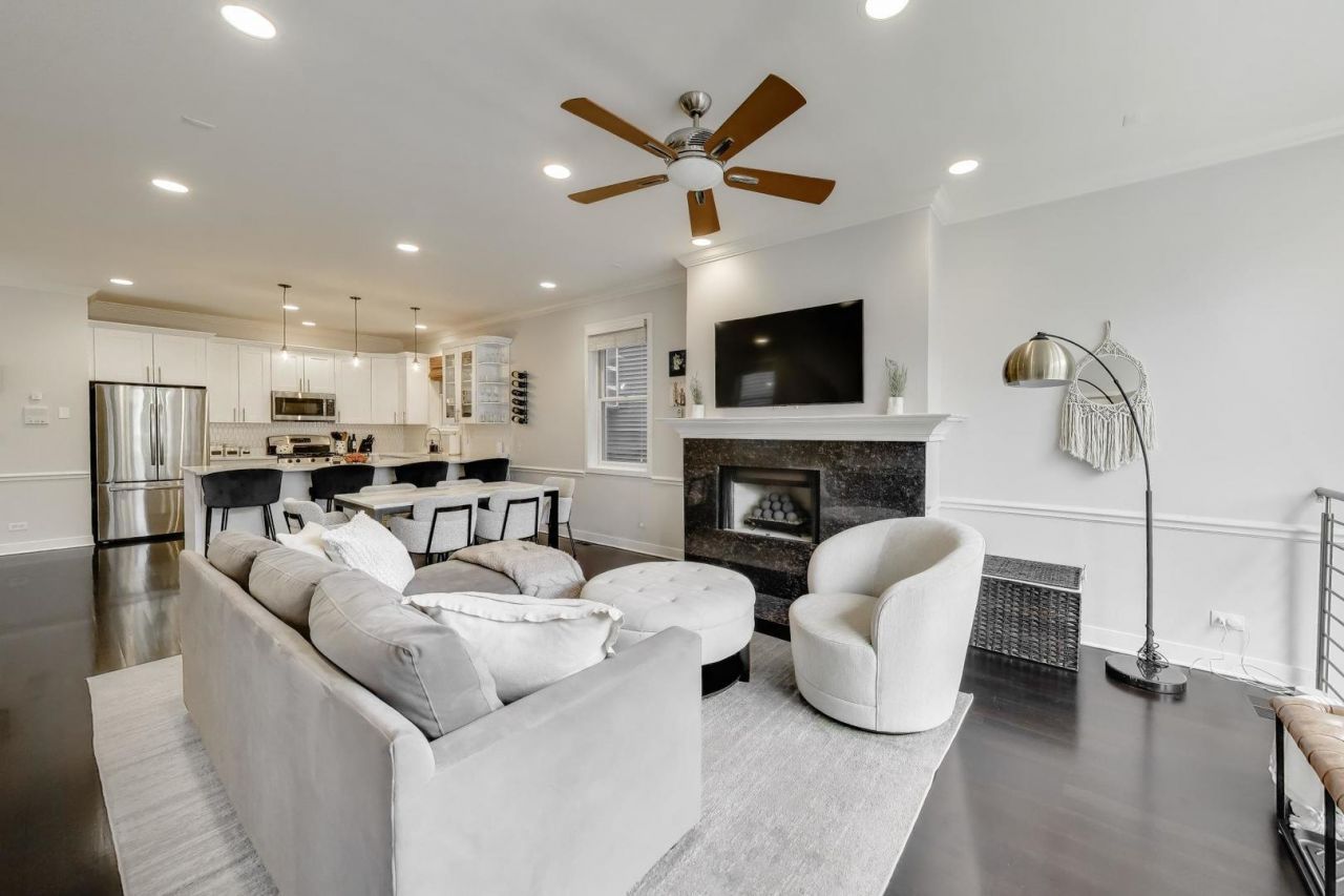 Welcome to this beautifully maintained 3-bedroom, 2.5-bathroom duplex down, ideally situated at the crossroads of Lincoln Park and Lakeview-offering the perfect blend of neighborhood charm and city convenience. Located within the highly sought-after Prescott Elementary School district, this home is part of an intimate, fully owner-occupied three-unit building, delivering both privacy and pride of ownership. Step inside to find hardwood floors throughout the main living areas, complemented by plush carpeting in two bedrooms for added comfort, and hardwood in the third. With a fireplace on each level, the home is perfectly designed for both cozy nights in and effortless entertaining across multiple spaces. The stunning open-concept kitchen serves as the centerpiece of the home-thoughtfully designed and sure to impress. The primary suite is a true retreat, featuring a completely gut-rehabbed bathroom completed in 2024 with modern finishes and attention to detail. A smart split-bedroom floor plan ensures privacy for both owners and guests, making the layout as functional as it is inviting. Additional highlights include an exclusive garage rooftop deck-perfect for outdoor relaxation or hosting-along with extra storage and garage parking. This is a rare opportunity to own a meticulously cared-for home in one of Chicago's most desirable neighborhoods.