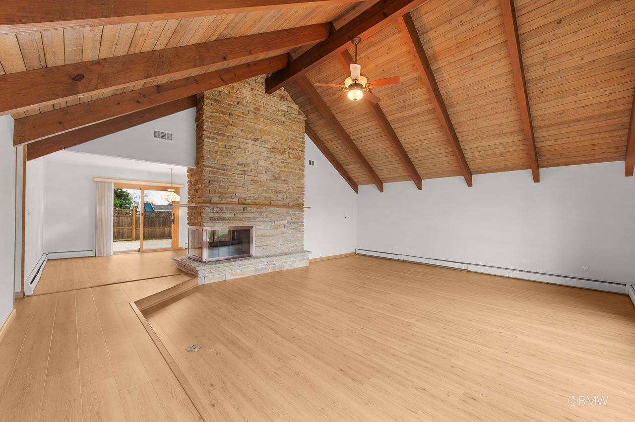 Beautiful Ranch Home in Desirable Nordic Park Subdivision! Step into a stunning great room featuring vaulted ceilings, woodwork, and a double-sided fireplace that flows perfectly into a fully renovated kitchen-perfect for both everyday living and entertaining. This ranch offers 3 spacious bedrooms and 2 full bathrooms. The fully finished basement includes an additional family room, a half bath and an expansive crawl space, providing exceptional storage. This home has been meticulously maintained and thoughtfully updated, including: new roof and gutters (2023), cement patio (2026), Andersen windows (2019), water heater (2026), full kitchen renovation, and updated bathrooms. Enjoy the benefits of low unincorporated taxes while still having access to public water and sewer, along with highly regarded Itasca schools and Lake Park High School.