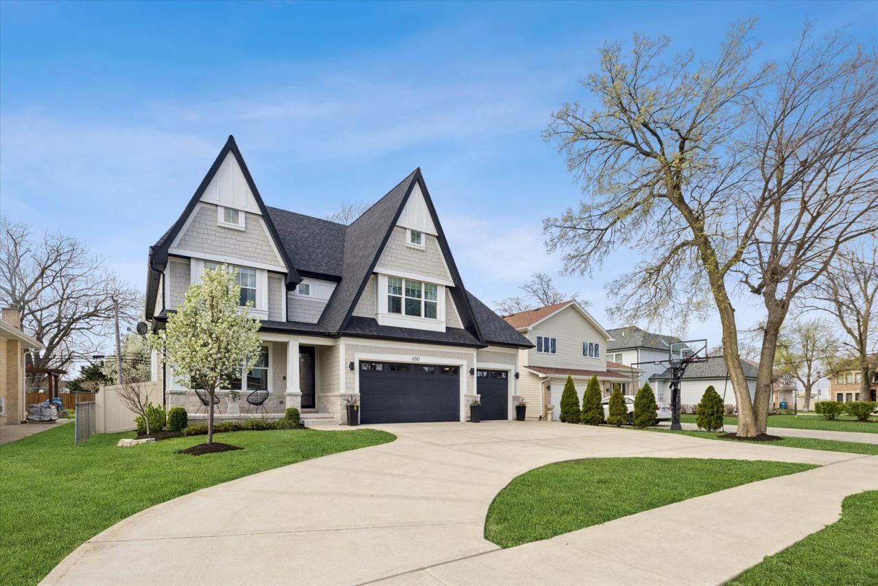 Custom built by one of Elmhurst's top builders, this exceptional home sits on a 60-foot-wide lot and offers a rare 3-car heated garage with epoxy floors, a circular driveway, and a covered front porch that creates unforgettable curb appeal. Inside, the home opens to a welcoming foyer and features a flexible front room perfect as a private office or cocktail lounge, along with a formal dining room designed for entertaining. The custom gourmet kitchen is the heart of the home, showcasing a large island, commercial-grade stainless steel appliances, bar area, and a walk-in pantry, all flowing into a spacious eating area. The family room is rich with character, featuring a fireplace, custom built-ins, and decorative beamed ceilings. The main level also includes a powder room and a beautifully designed custom mudroom. Upstairs, the second-floor landing is accented with decorative ceiling detail and leads to a luxurious primary suite with a vaulted ceiling, dual walk-in closets, and a spa-like bath with a soaking tub and oversized walk-in shower. Four additional spacious bedrooms, beautifully finished bathrooms, and a custom second-floor laundry room complete the upper level. The oversized backyard is built for enjoyment with a large patio, pergola, and plenty of space to play or relax. Additional highlights include custom window treatments throughout. All this in an outstanding location just a short walk to Berens Park with its playground, batting cages, mini golf, splash pad, sled hill, beach volleyball, and more